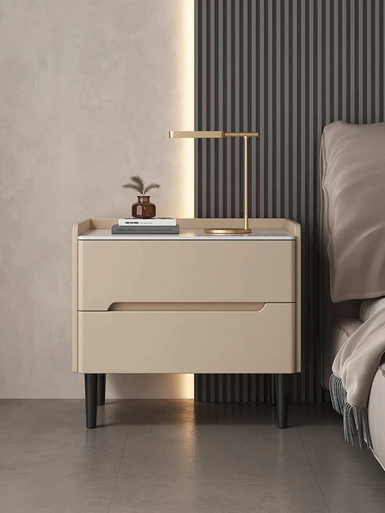 クリーム風のベッドサイドキャビネット|モダンでスリムなデザイン|狭いスペースにもぴったりな天然木製ミニ収納キャビネット|快適な寝室に最適!