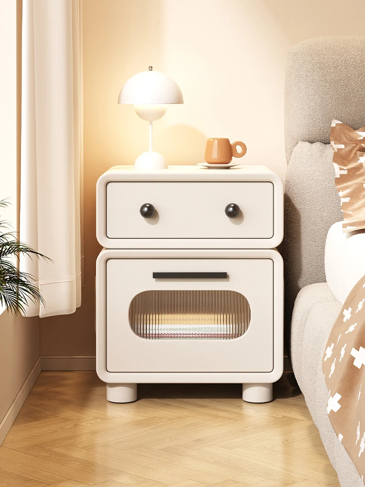 三夢クリーミーウッドナイトテーブル - シンプルでモダンな2025新作!家庭用に最適なコンパクトでクリエイティブなベッドサイド収納キャビネット。おしゃれなデザインで、あなたの寝室にぴったり。