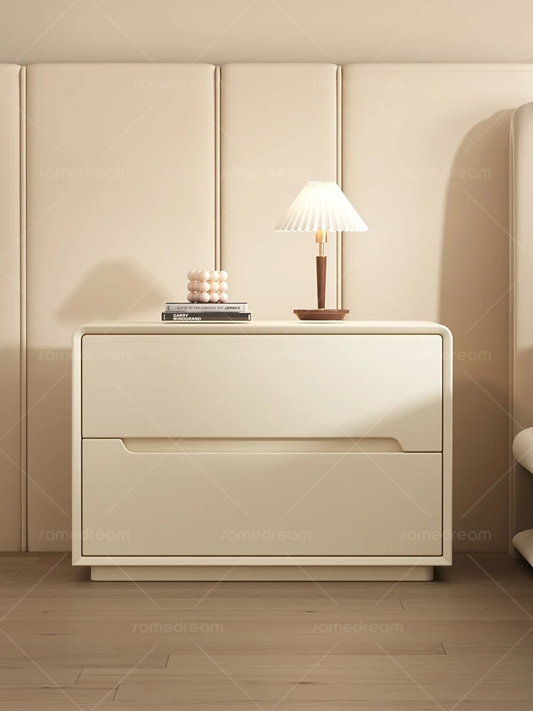 三夢の無垢材ナイトテーブル - シンプルでモダンな2024年新作!クリーミーな風合いのプチラグジュアリーなホーム用収納キャビネット。おしゃれで機能的な寝室の必需品です!
